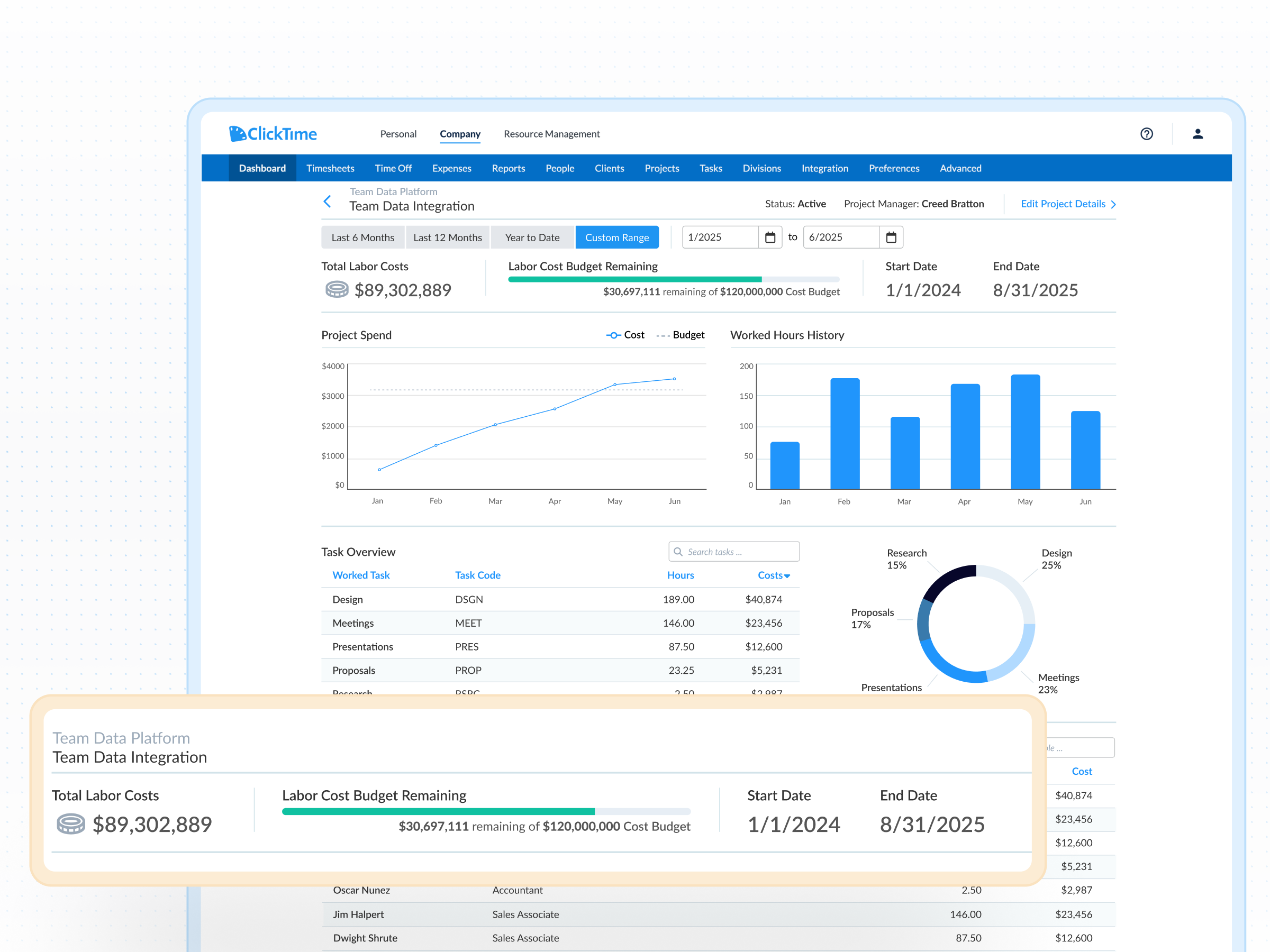 Eliminate tedious back-and-forth with ClickTime’s seamless integrations. Easily connect with essential tools like QuickBooks, Jira, and more—ensuring your teams stay in sync without extra manual work.