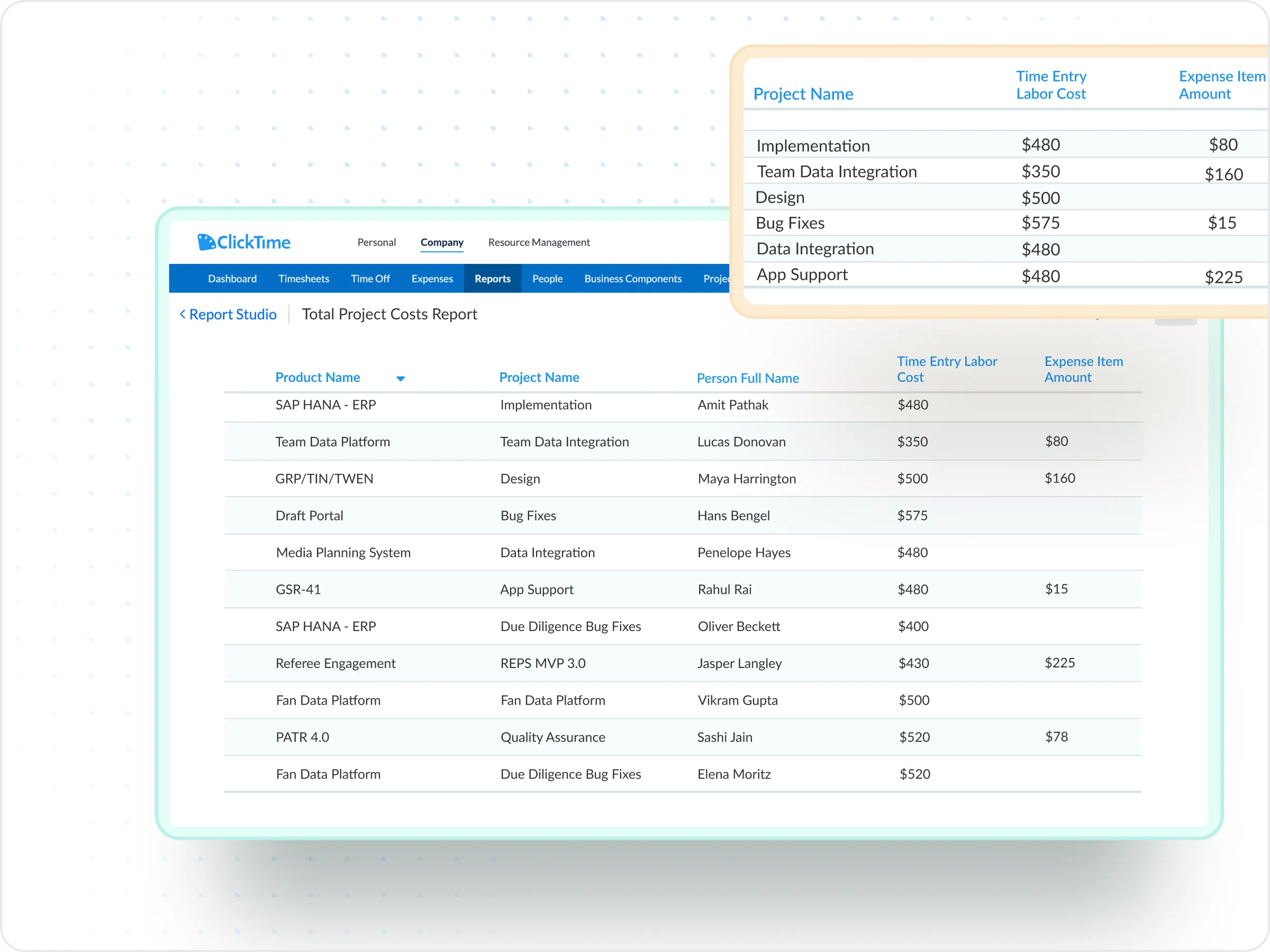 Sort expenses into billable or internal projects. Attach receipts as proof of purchase. Then combine time and expense data into client reports or feed into invoices—so you recover every cost, not just the ones you remembered to track.