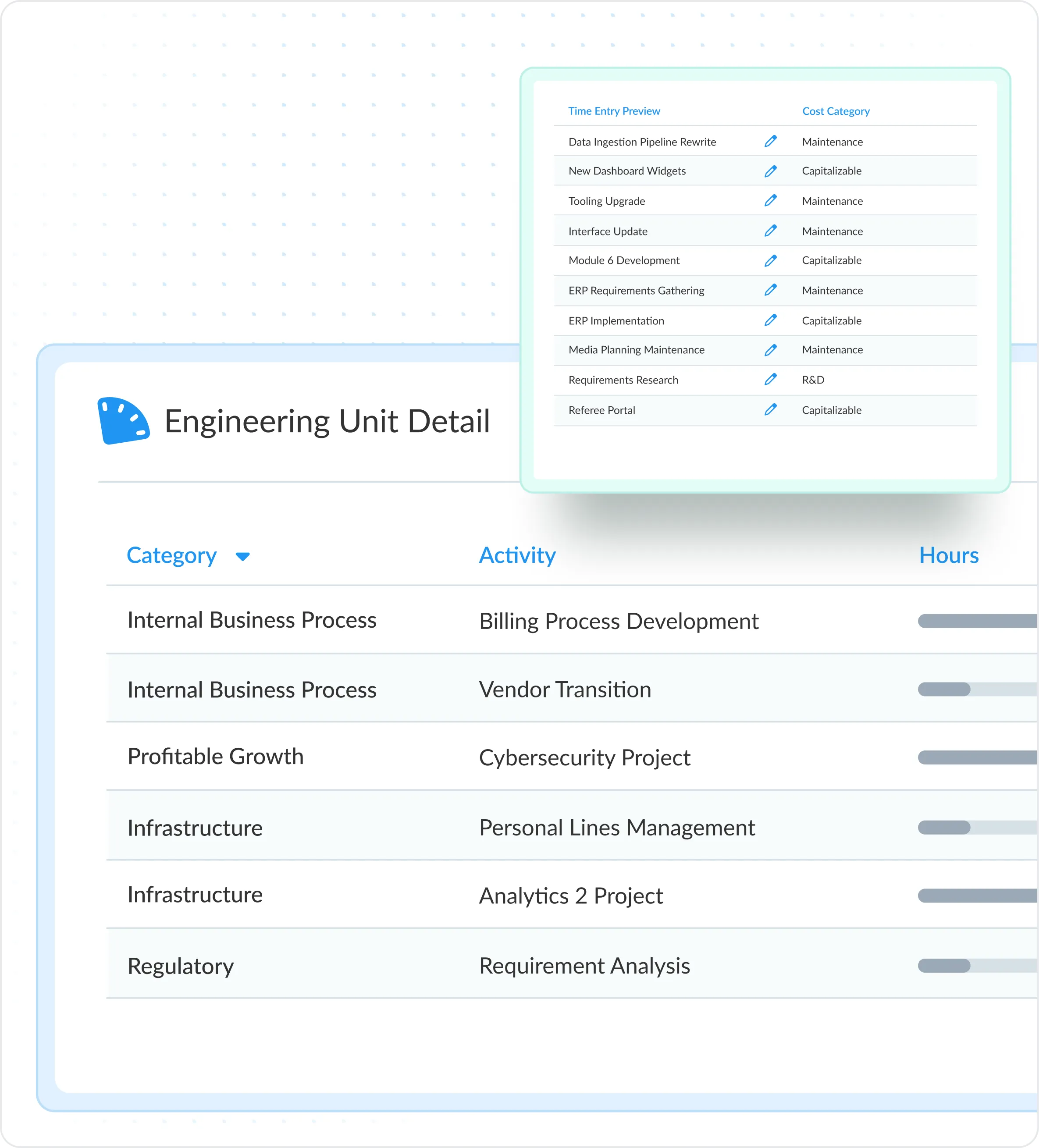 - Billable vs. non-billable, CapEx vs. OpEx, R&D-eligible—captured at entry, not reconciled later